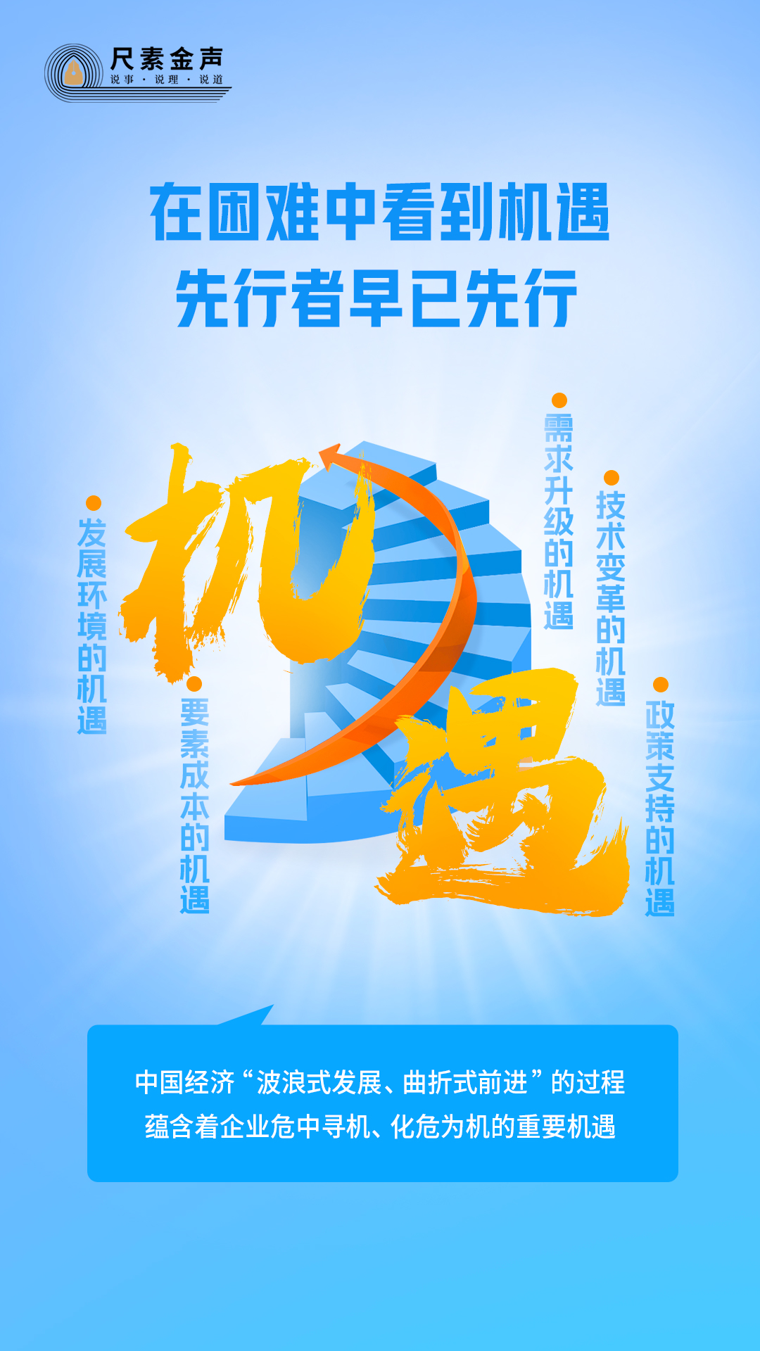 辯證看,應(yīng)對(duì)困難、解決問題的過程,往往也是育新機(jī)、開新局的過程。當(dāng)前,中國經(jīng)濟(jì)“波浪式發(fā)展、曲折式前進(jìn)”的過程,蘊(yùn)含著企業(yè)危中尋機(jī)、化危為機(jī)的重要機(jī)遇。
