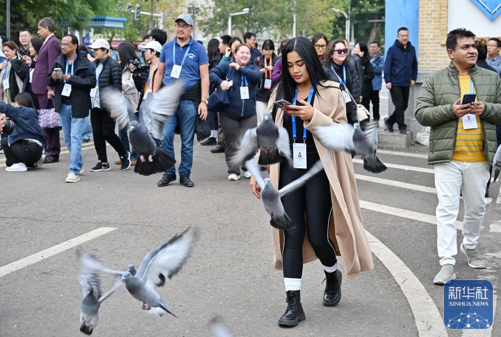 10月15日,與會(huì)嘉賓在伊寧市喀贊其民俗旅游區(qū)參觀。