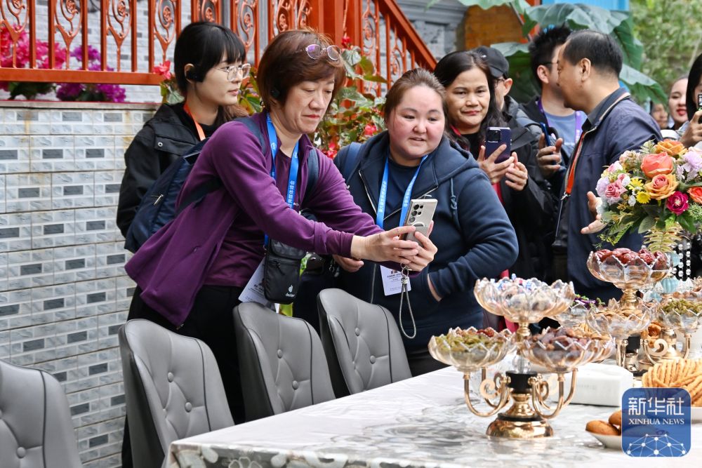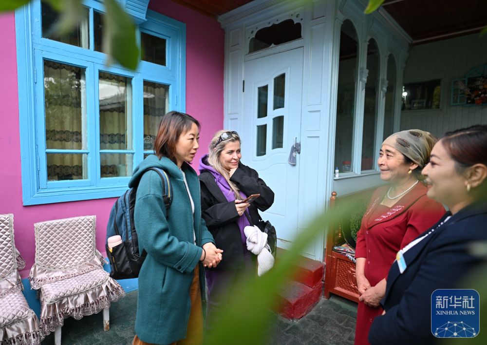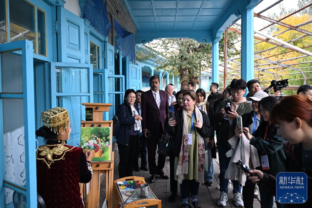 10月15日,與會(huì)嘉賓在伊寧市喀贊其民俗旅游區(qū)參訪。