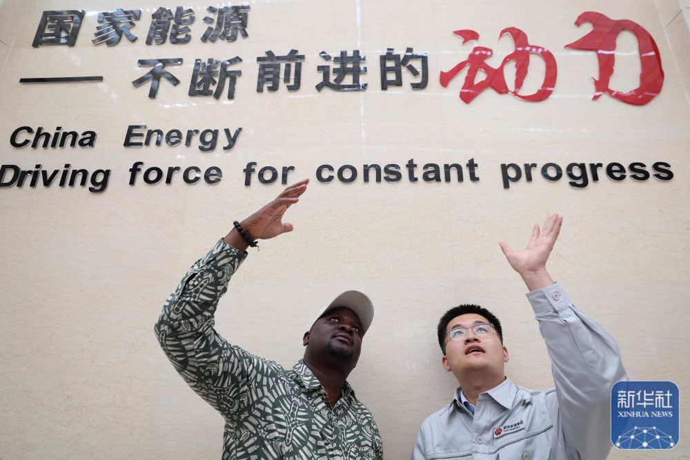 10月15日,與會(huì)嘉賓在國(guó)家能源集團(tuán)龍?jiān)赐卖敺履茉从邢薰緟⒃L時(shí)與工作人員交流。