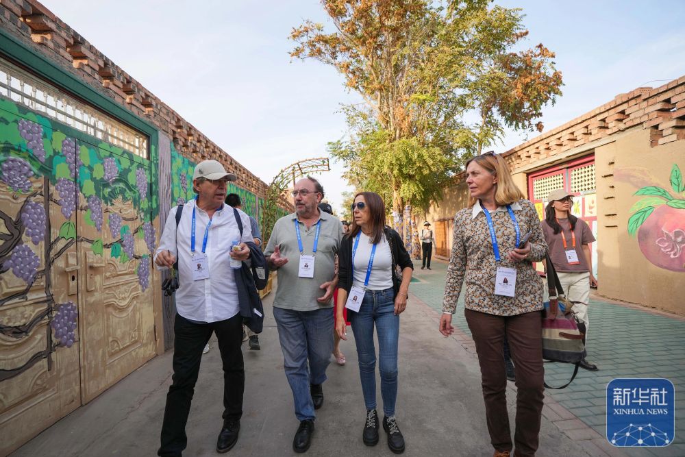 10月15日,與會(huì)嘉賓在吐魯番市高昌區(qū)亞爾鎮(zhèn)新城片區(qū)新城西門村參訪。