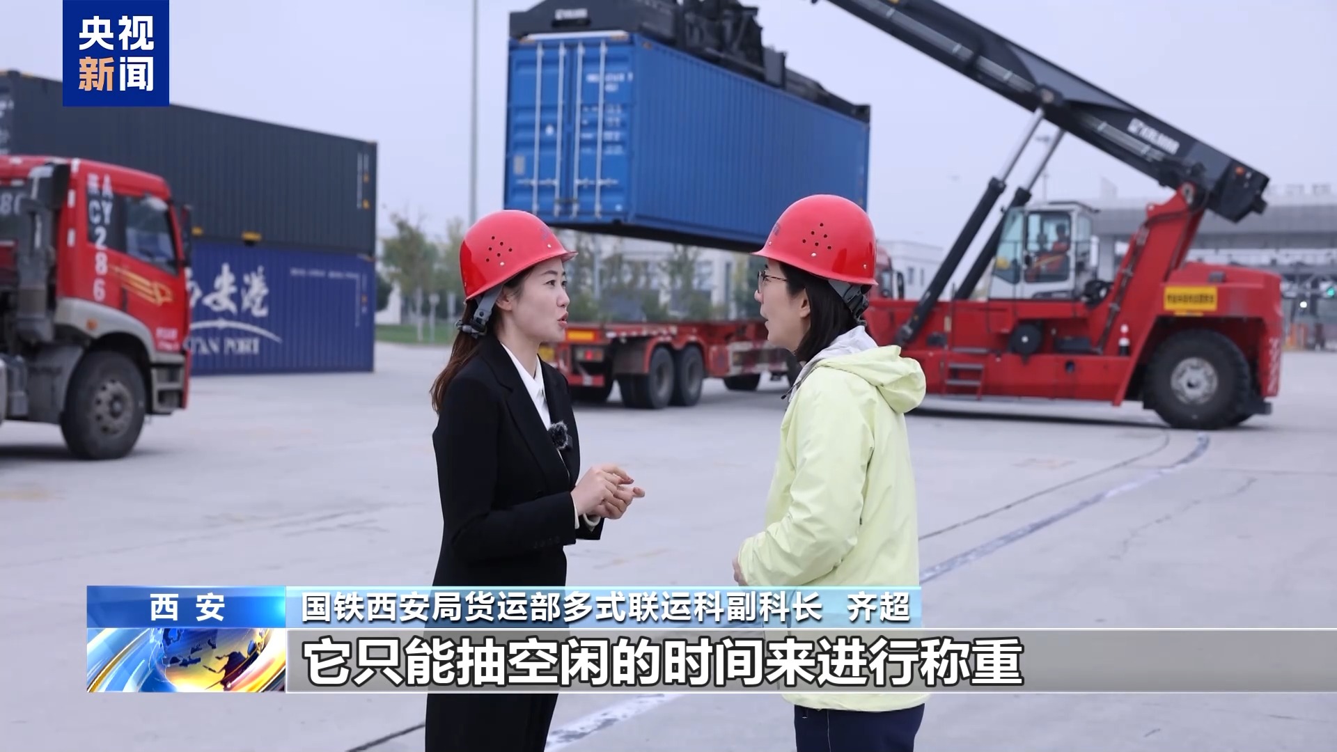 國鐵西安局貨運(yùn)部多式聯(lián)運(yùn)科副科長 齊超:因為龍門吊的主要任務(wù)是為了裝卸火車,只能抽空閑的時間進(jìn)行稱重,所以集卡司機(jī)等待的時間非常長,而且沒有確定性,也不知道什么時候能稱到自己。