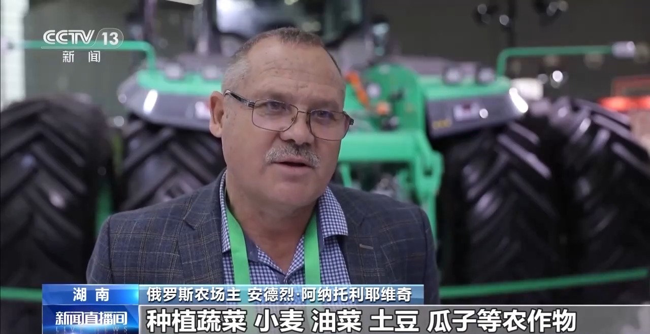俄羅斯農(nóng)場主 安德烈·阿納托利耶維奇:我們的農(nóng)場面積有22000公頃,種植蔬菜、小麥、油菜、土豆、瓜子等農(nóng)作物。我們這次專門來中國采購設(shè)備,這會幫助我們更快速地發(fā)展。中國的產(chǎn)品質(zhì)量好,價格實惠。