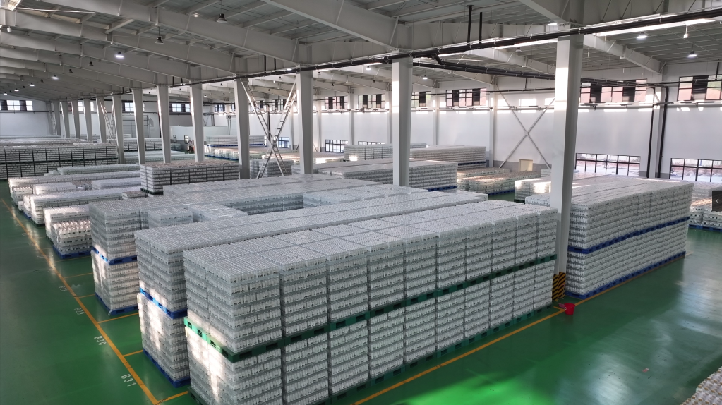 2024年10月30日拍攝的丹江口武當(dāng)山水飲料有限公司倉(cāng)庫。(王世霖 攝)