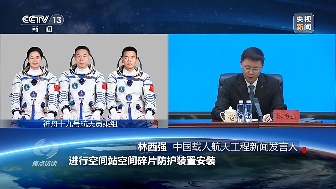 中國載人航天工程新聞發(fā)言人 林西強:此次任務(wù)在空間站駐留約六個月,開展空間科學(xué)與應(yīng)用實(試)驗,實施航天員出艙活動及貨物進出艙,進行空間站空間碎片防護裝置安裝,艙外載荷和艙外設(shè)備安裝與回收等任務(wù),開展科普教育和公益活動以及空間搭載試驗。