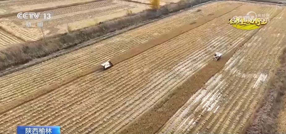 陜西榆林:水稻收割超四成 塞上好“豐景”