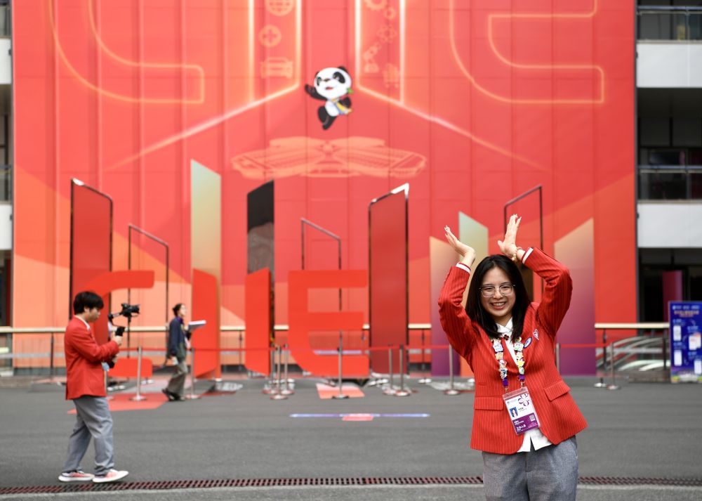 11月4日,志愿者在第七屆中國國際進(jìn)口博覽會(huì)舉辦場(chǎng)地——國家會(huì)展中心(上海)留影。