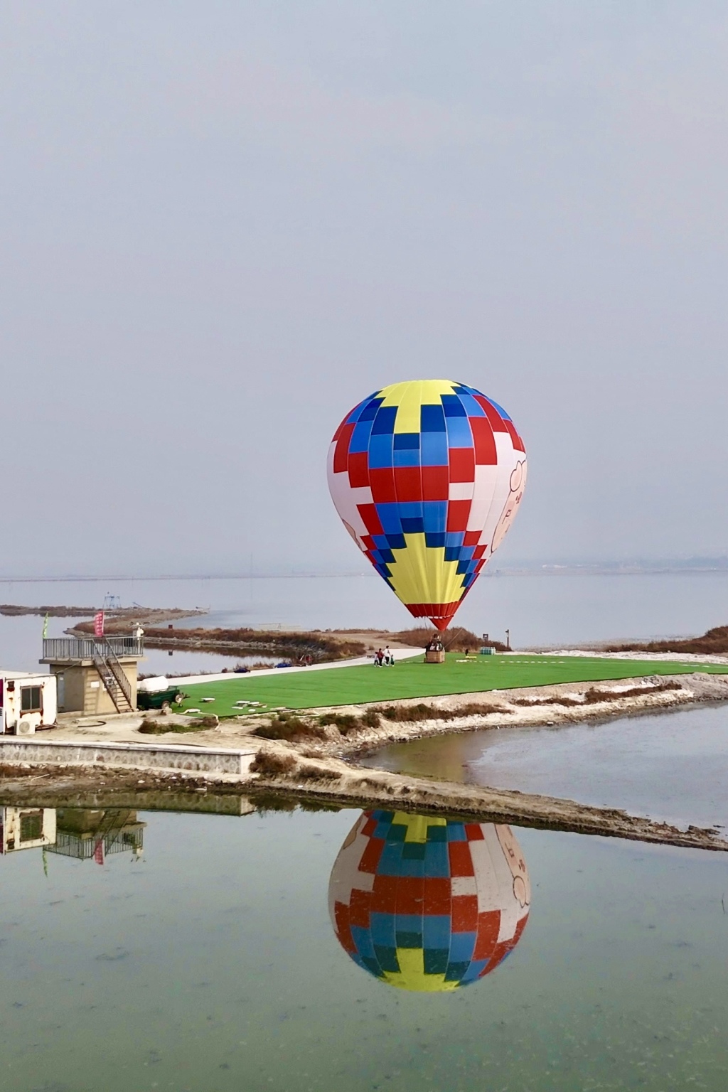 運城七彩鹽湖景區(qū)的熱氣球游覽項目。澎湃新聞記者 陳鑫露 攝