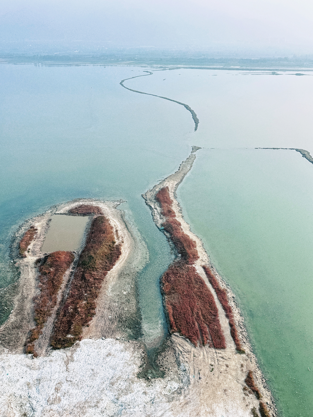 這個面積約132平方公里的湖泊,位于運城盆地的盆底,是山西省最大的湖泊,也是中國最大的硫酸鈉型鹽湖。這里年均降水量497mm,蒸發(fā)量卻高達(dá)2102mm,為降水量的4.2倍,致使湖水不斷濃縮,含鹽量日漸增加,形成鹽湖。