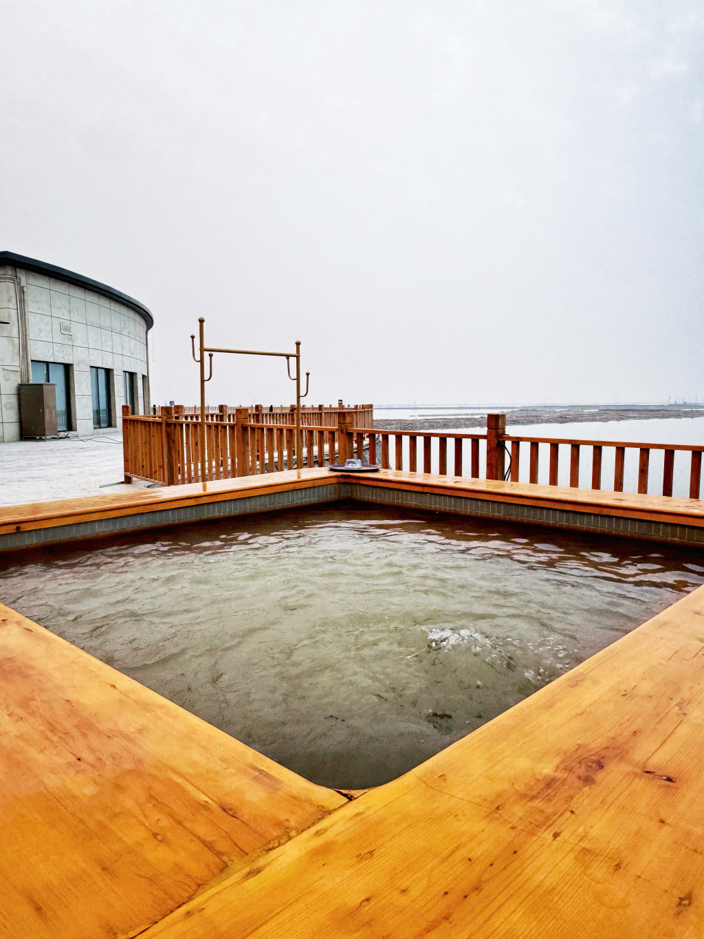運城鹽湖打造出了以鹽為本的“五絕”康養(yǎng)休閑體驗之一——醫(yī)用溫泉水療。這里的溫泉水源自鹽湖中心腹地2121米深處,為氟、鍶型地?zé)岬V泉水,醫(yī)用價值高。澎湃新聞記者 金向玉 攝