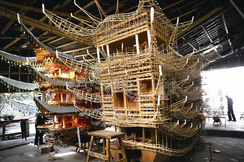 做“首飾龍”的匠人,沒有圖紙,全憑師傅一生的經(jīng)驗來規(guī)劃不同船型和運動方式。林順奎制作的首飾龍身上有大大小小80多個樓閣、亭臺,濃縮了《封神榜》《西游記》等80多出戲,有近300個形態(tài)各異、從事各行各業(yè)的古今人物。