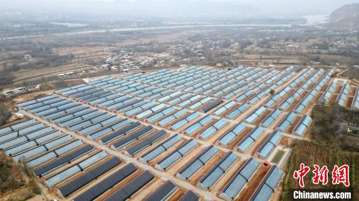 11月21日,航拍甘肅省積石山縣大河家鎮(zhèn)韓陜家村集中安置點后續(xù)產業(yè)——高效節(jié)能日光溫室蔬菜大棚。九美旦增 攝