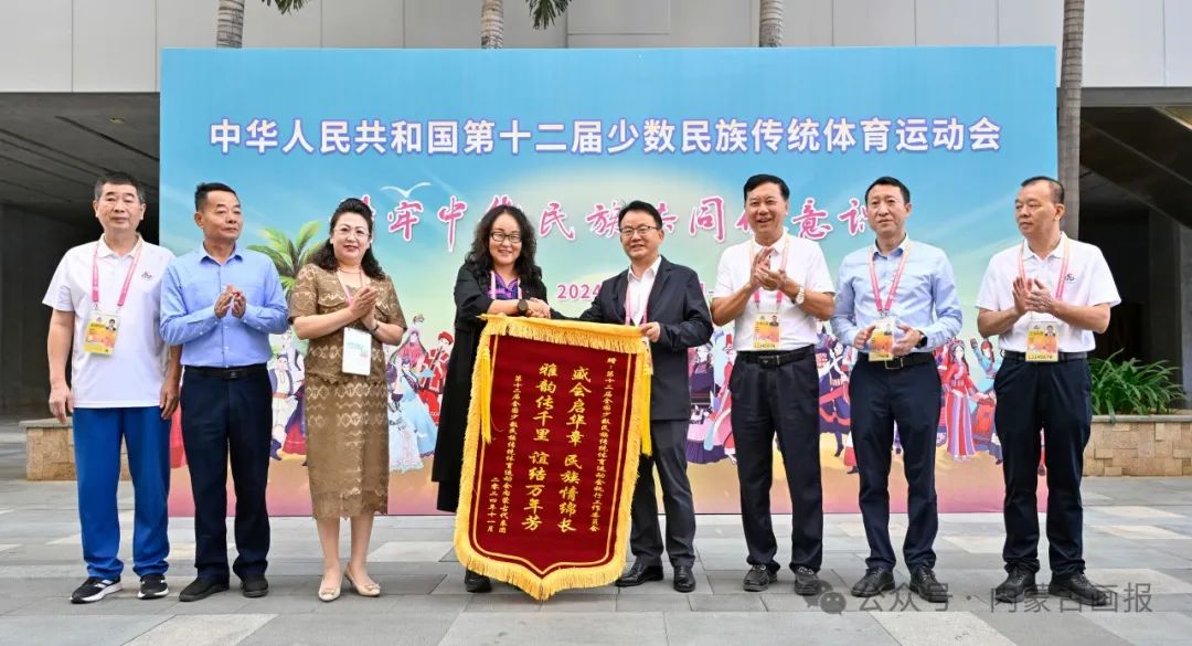 向第十二屆全國少數(shù)民族傳統(tǒng)體育運(yùn)動會執(zhí)行工作委員會贈送錦旗