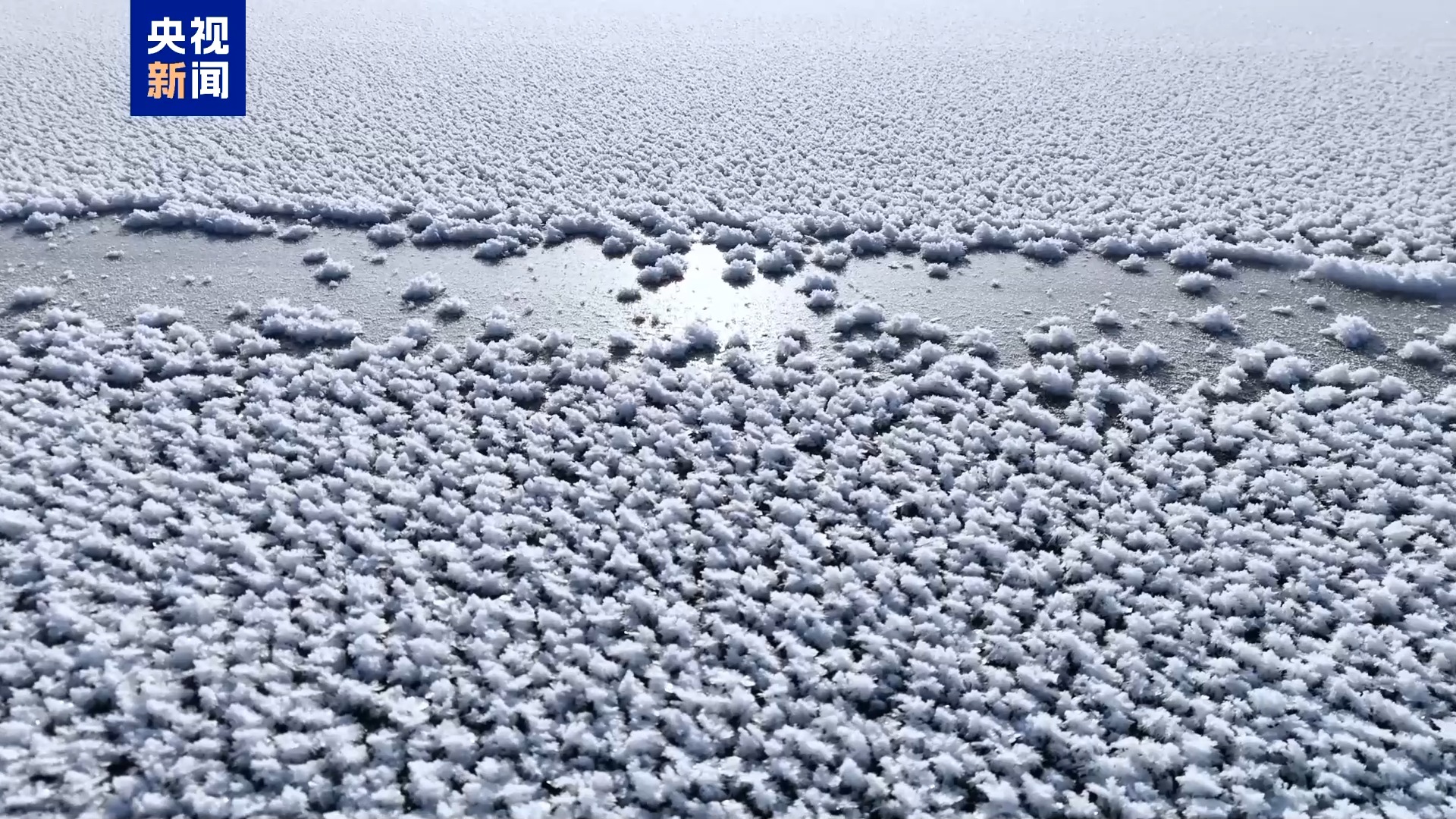 據(jù)了解,博斯騰湖 “冰花”奇觀形成的原因主要是氣溫在短時(shí)間內(nèi)驟降,冰面上過冷的飽和水汽碰到干凈光滑的冰面,使得冰面上慢慢長出了“冰花”。