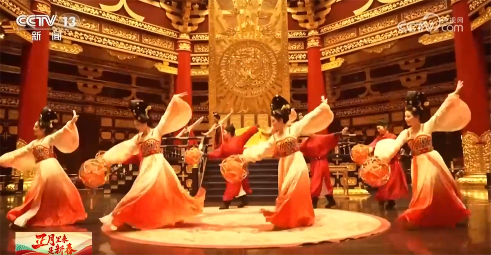 在河南鄭州星河里唐宮夜宴實景演繹文化園,春節(jié)限定節(jié)目《元正夜宴》正在精彩上演,游客可以近距離觀賞打魚燈、掛桃符、吃五辛盤等唐代過年文化。春節(jié)期間,每天都有近百場沉浸式古風演繹在這里上演,游客穿唐裝、品唐俗、吃唐席,一站式體驗傳統年俗。