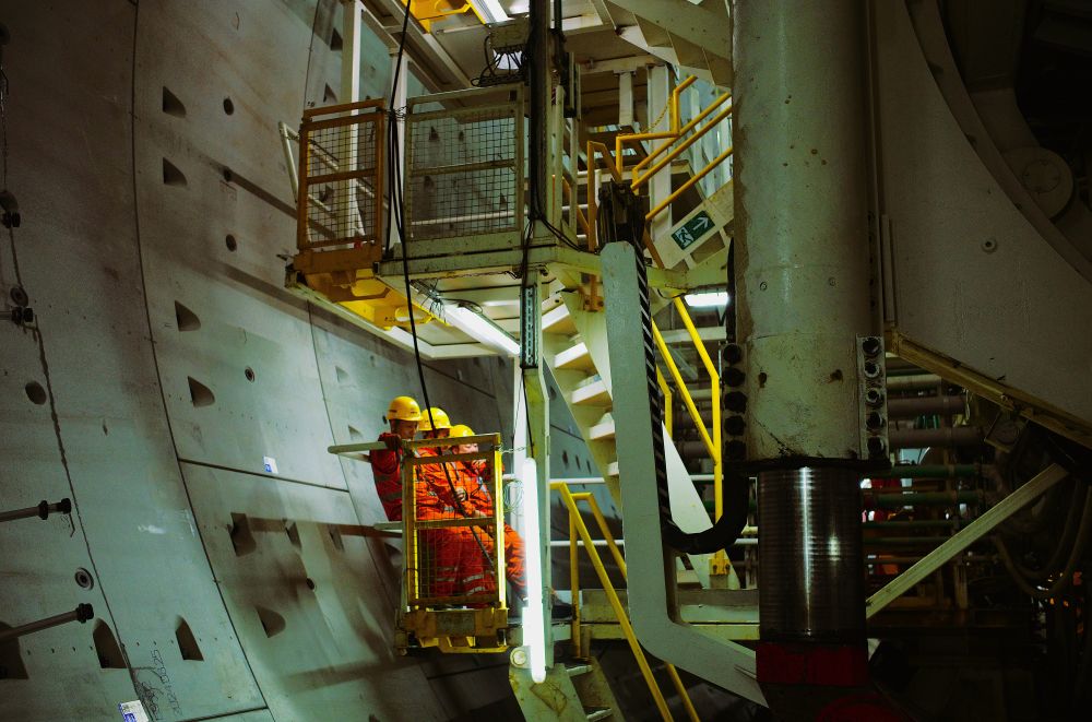 走進這個黃河之下的“地底世界”,冷白色燈光如星輝般灑在隧道管片上,濃濃“水泥風(fēng)”撲面而來。