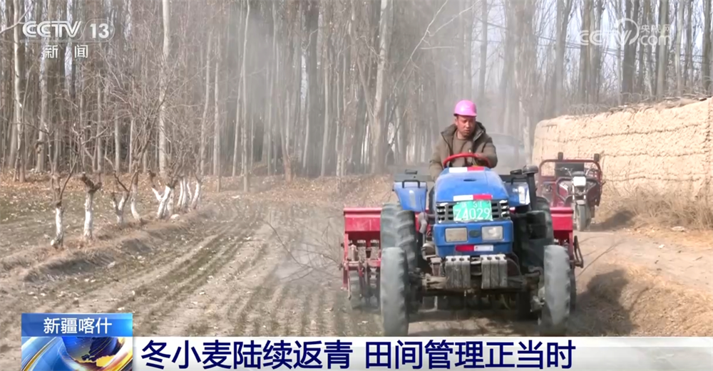在新疆喀什阿依庫勒村,記者看到一袋袋肥料已碼放在地頭,拖拉機正在田間為冬小麥追施返青肥。為確??κ驳貐^(qū)冬小麥春季管理工作順利進行,當?shù)剞r(nóng)業(yè)部門結合當前冬小麥的長勢和天氣情況,科學指導,組織做好冬小麥病蟲草害防治、保墑防凍、追肥等工作。