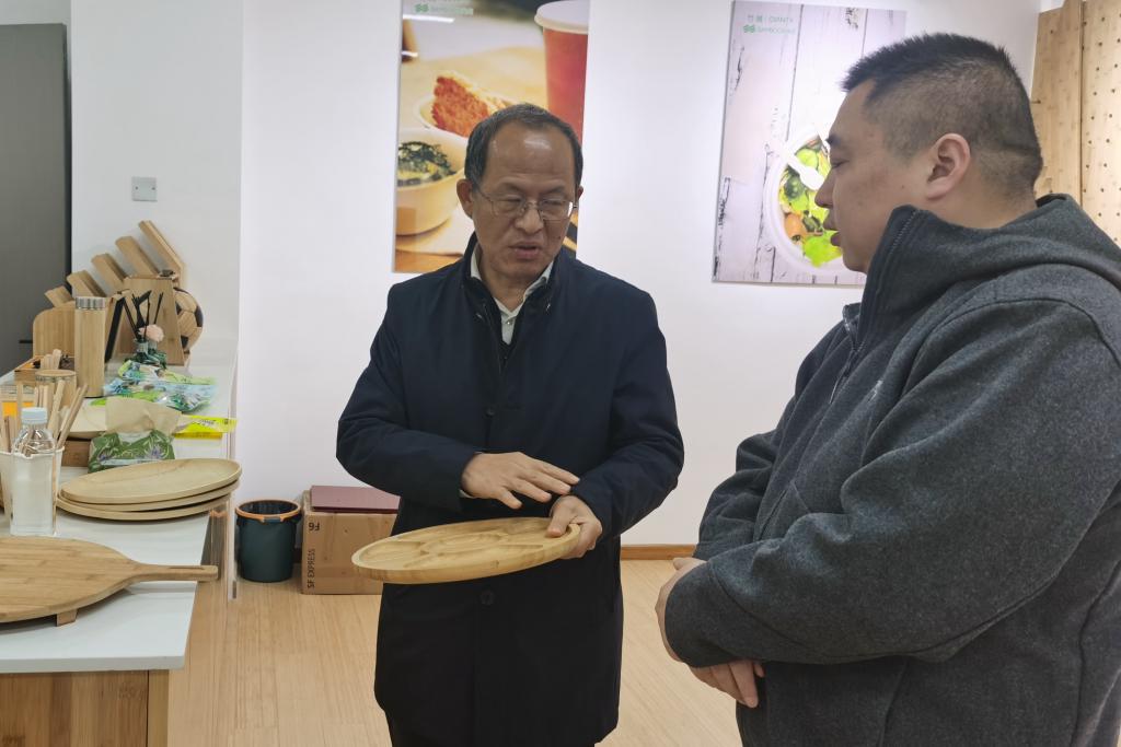 蘭定國(左)在進行“以竹代塑”調(diào)研。(受訪者供圖)