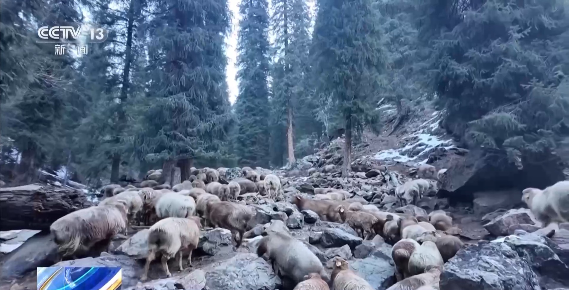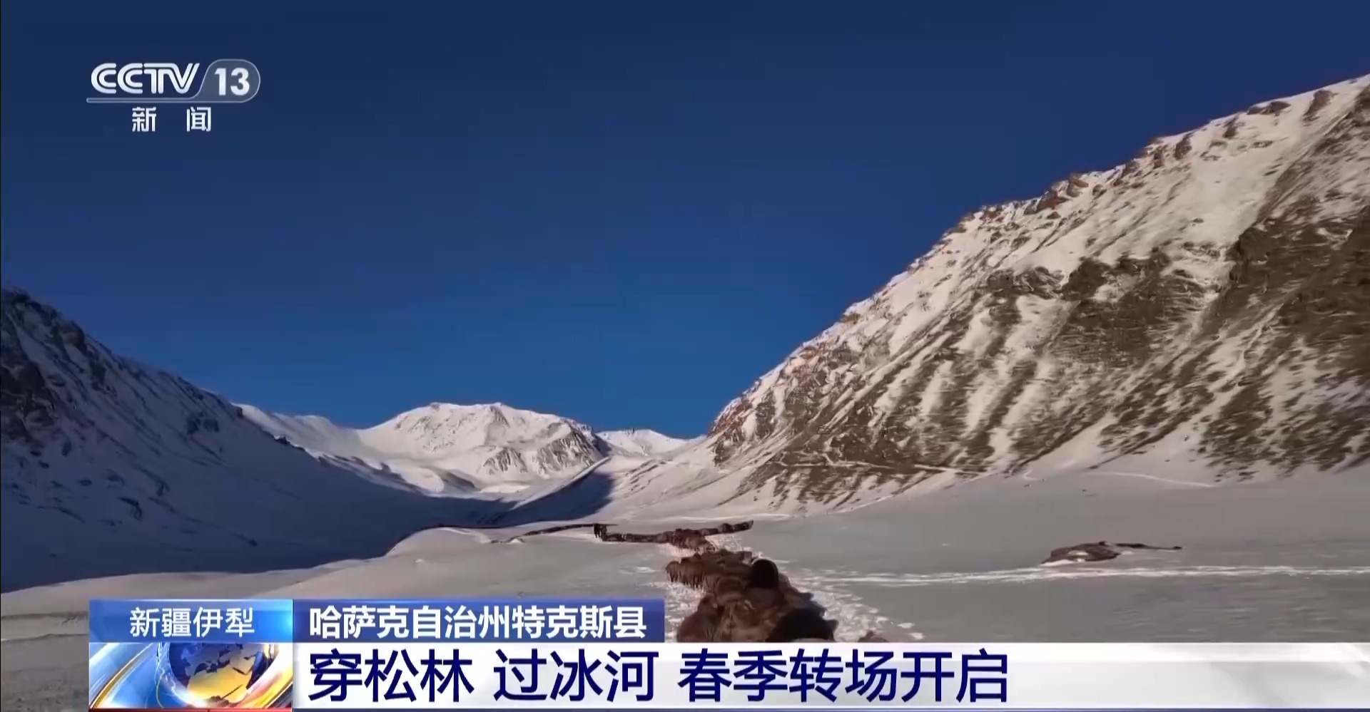 這幾天,新疆伊犁哈薩克自治州特克斯縣11.7萬只牲畜開啟春季轉(zhuǎn)場,當(dāng)?shù)啬撩駛冓s著牲畜跨越海拔3800多米的喬拉克阿蘇達(dá)坂,從伊犁河谷最大的冬牧場——包扎得爾冬牧場趕往春牧場或者定居點(diǎn)。一路上穿松林、過冰河,路途艱辛。