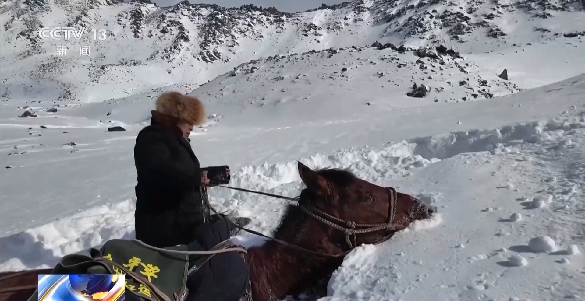 山上有很厚的積雪。即使有之前轉(zhuǎn)場的畜群踩出的路,也會很快被風(fēng)吹雪覆蓋。剛上達(dá)坂,干部阿曼吐爾騎的馬一不留神就摔在雪窩里,好在積雪厚,人和馬都沒有大礙。