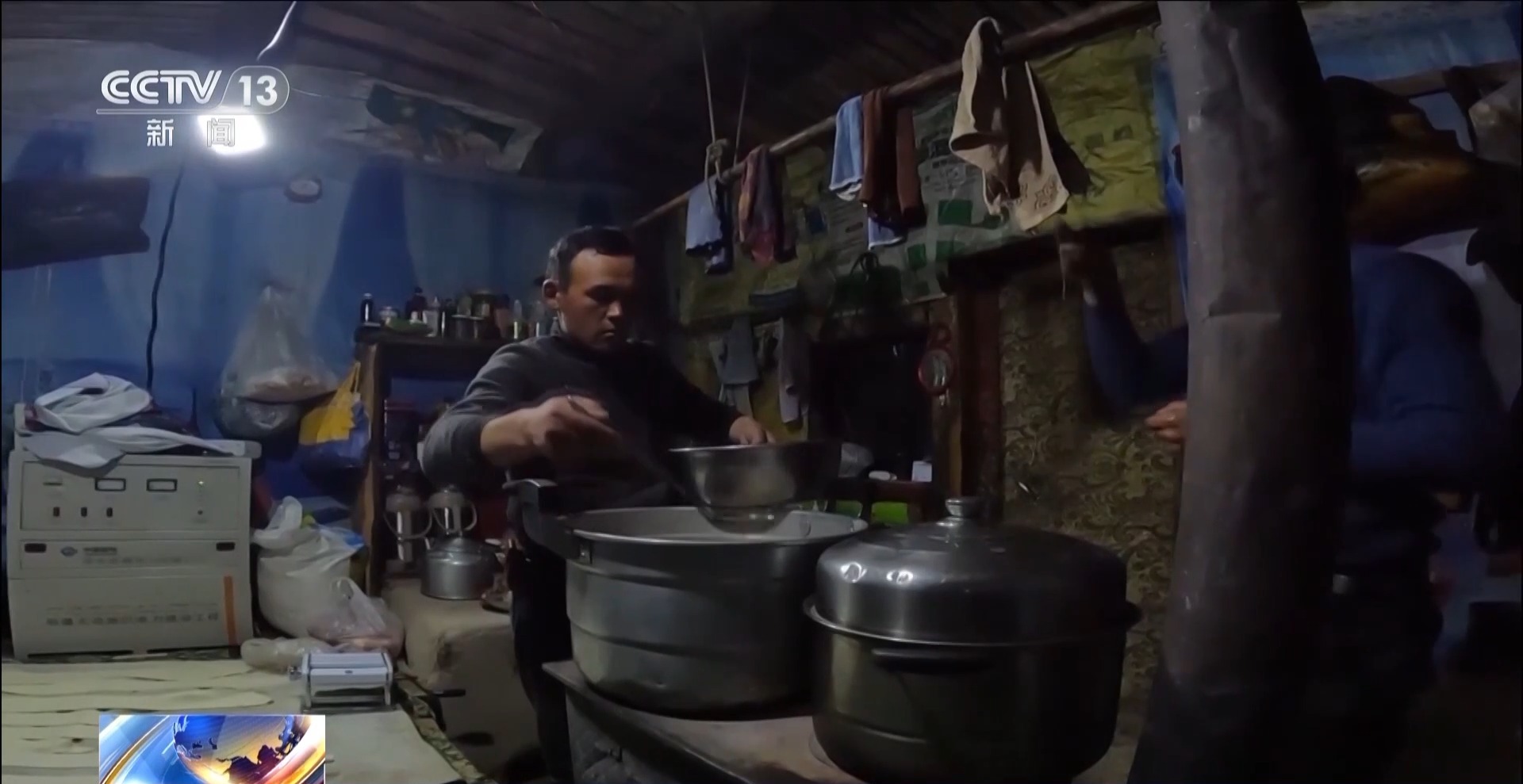眼下的春季轉(zhuǎn)場對牧民來說,是四季轉(zhuǎn)場中最難的一次。牛羊經(jīng)過一冬的嚴(yán)寒,缺乏新鮮飼草的飼喂身體變得瘦弱。加上大多是懷孕待產(chǎn)的母羊,轉(zhuǎn)場的路也異常嚴(yán)峻。天黑前,賽力克阿力一行到達(dá)了他們經(jīng)過的第一個(gè)轉(zhuǎn)場服務(wù)站:克孜勒塔斯轉(zhuǎn)場服務(wù)站,在這兒,大家終于吃上了熱騰騰的湯面,牛羊也能在這里補(bǔ)飼休息。