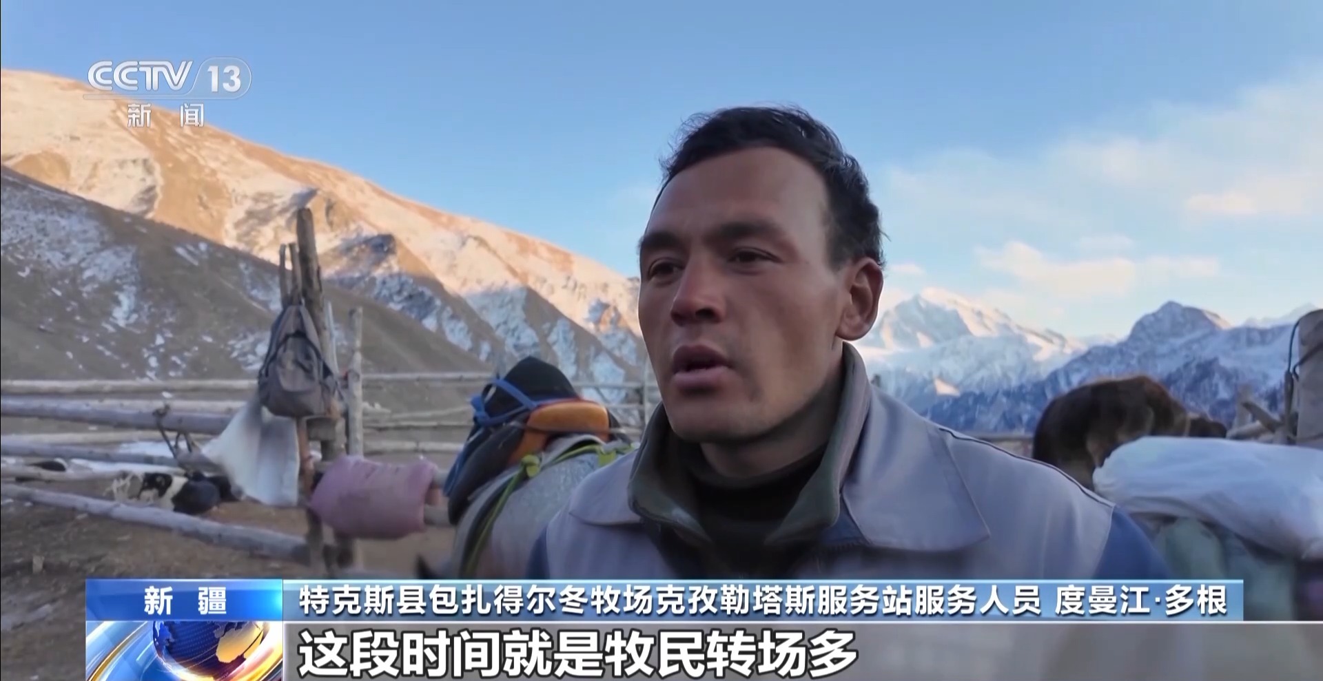 特克斯縣包扎得爾冬牧場克孜勒塔斯服務(wù)站服務(wù)人員 度曼江·多根:這段時(shí)間牧民轉(zhuǎn)場多,我們這里每天最少來三四個(gè)人,今天來了五家人,很熱鬧。