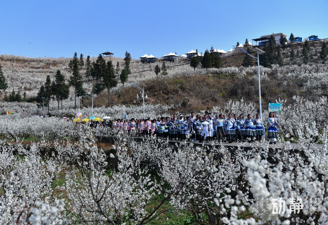 春光燦爛,畢節(jié)市納雍縣厙東關鄉(xiāng)以陶營村為核心的萬畝櫻花如期綻放。雪白的花瓣在枝頭搖曳,花香四溢,吸引了眾多游客前來觀賞。