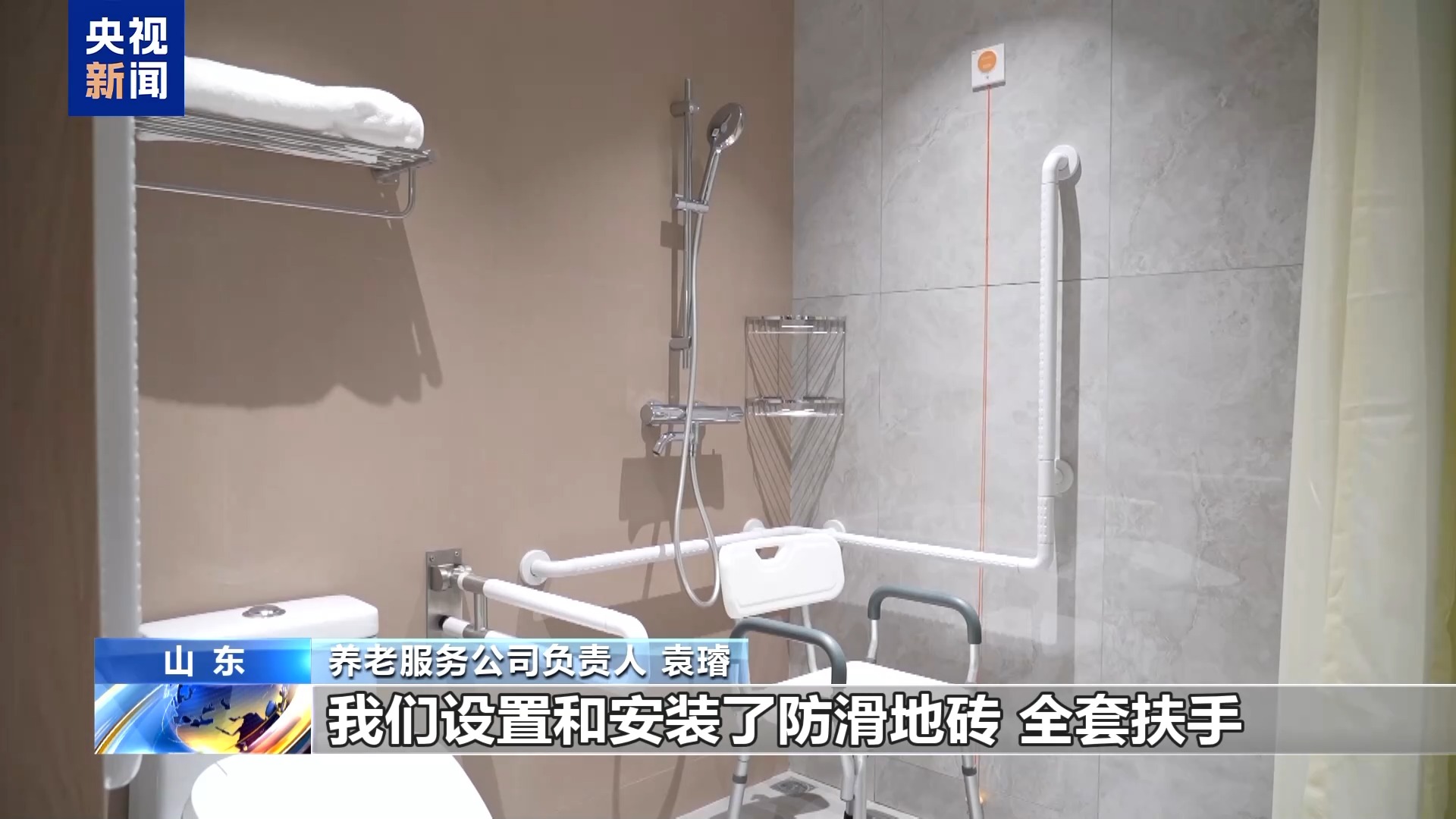 養(yǎng)老服務(wù)公司負(fù)責(zé)人 袁璿:在比較容易發(fā)生危險的衛(wèi)生間區(qū)域,我們設(shè)置和安裝了防滑地磚、全套扶手、按動式和拉繩式的緊急呼叫系統(tǒng),通過不斷豐富供給,提升我們的服務(wù)質(zhì)量。
