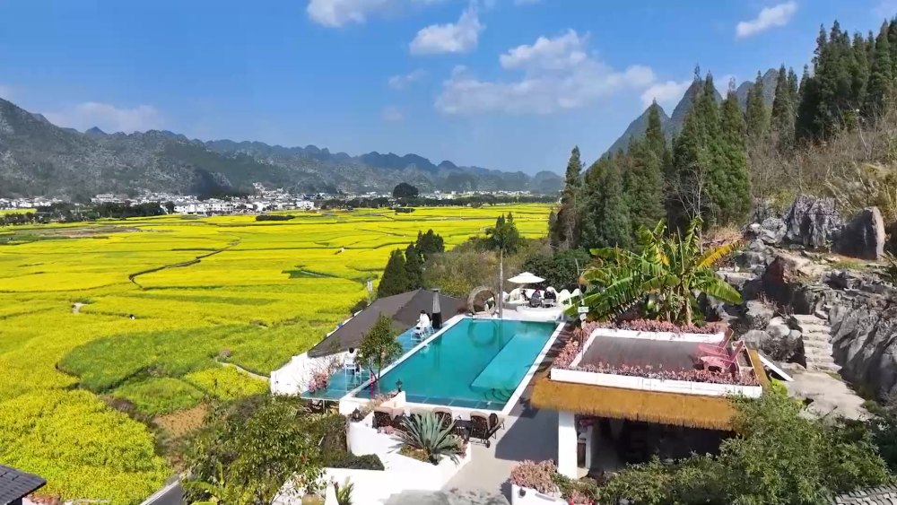眼下,貴州省興義市萬峰林景區(qū)內(nèi)的6000多畝油菜花競相綻放,盛開的油菜花與峰林、田園、村莊、河流交相輝映,金色花海染盡鄉(xiāng)野,形成一幅美麗的山水田園畫,吸引了眾多省內(nèi)外游客前來觀賞打卡,欣賞春日美景。