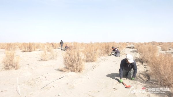 仲春時(shí)節(jié),地處南疆的阿克蘇,正是麥苗返青、杏花盛開的時(shí)候。這幾天,在塔克拉瑪干沙漠邊緣阻擊戰(zhàn)北部前沿的沙雅縣、阿瓦提縣、新和縣等縣(市),廣大黨員干部及各族群眾正開展大規(guī)模植樹造林。一排排新植的梭梭苗迎風(fēng)挺立,煥發(fā)出勃勃生機(jī)。