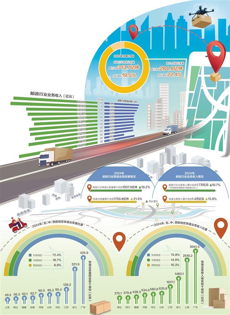 消費(fèi)是經(jīng)濟(jì)增長的主引擎,快遞業(yè)務(wù)增長源于消費(fèi)需求有效釋放。從中央經(jīng)濟(jì)工作會(huì)議強(qiáng)調(diào)大力提振消費(fèi)、提高投資效益,全方位擴(kuò)大國內(nèi)需求,到今年《政府工作報(bào)告》圍繞“大力提振消費(fèi)”作出工作部署,再到各級(jí)政府和有關(guān)部門加碼促消費(fèi),消費(fèi)市場活力持續(xù)攀升。2025年,消費(fèi)潛能將加速釋放,快遞業(yè)仍將保持穩(wěn)步上升態(tài)勢,更多人會(huì)享受到便捷的寄遞服務(wù)。 (本文來源:經(jīng)濟(jì)日?qǐng)?bào) 作者:吉蕾蕾)