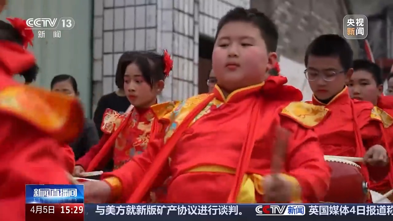 清明前夕,在浙江嘉興桐鄉(xiāng)市河山鎮(zhèn)八泉村的蠶俗廣場(chǎng)上,隨著蠶花鼓的敲響,一場(chǎng)傳統(tǒng)的“蠶花禮”儀式拉開(kāi)了清明民俗會(huì)的帷幕。