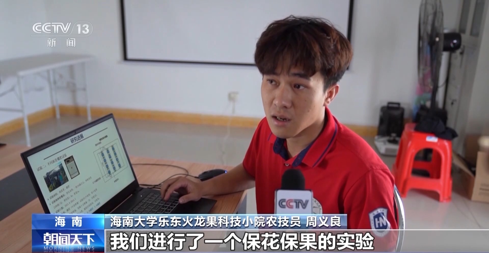 海南大學樂東火龍果科技小院農(nóng)技員 周義良:根據(jù)這個現(xiàn)狀,我們進行了一個?;ū9膶嶒?,通過不同濃度的硼肥、氨基酸肥、授粉和溫度調(diào)控來進行實驗,坐果率提升了20%左右。