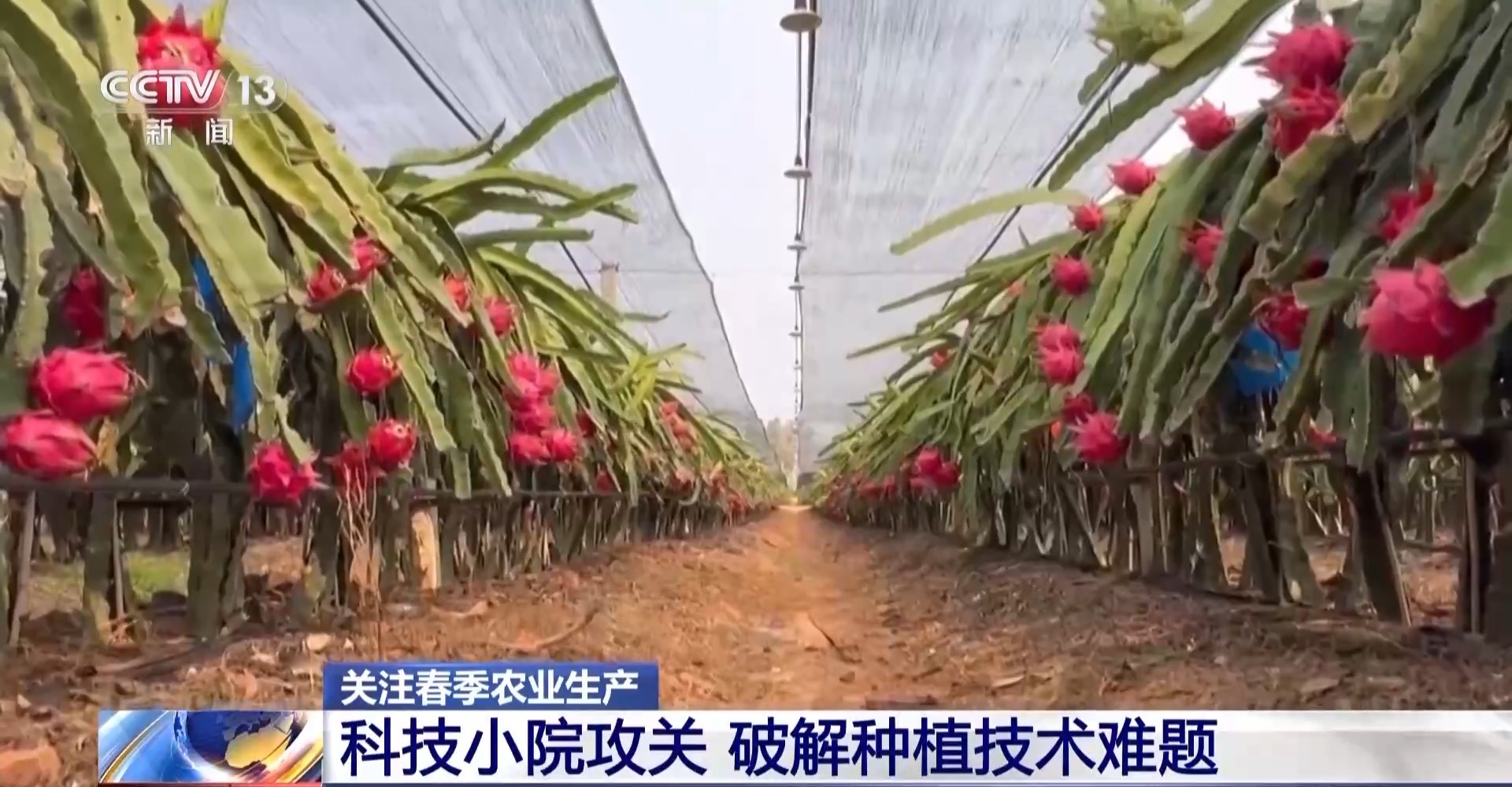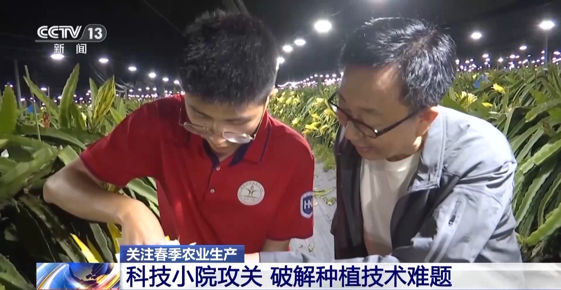 不僅僅是燕窩果,像傳統(tǒng)的熱帶水果火龍果的種植難題,也正在通過科技小院的技術(shù)得以攻破。晚上八點多,尖峰鎮(zhèn)方圓幾十里火龍果種植園區(qū)燈火通明,而夜晚點亮燈光的目的是給火龍果補光,讓枝條能夠長出花苞并順利開花。火龍果開花時間一般在晚上八點到十二點之間,為此科技小院的技術(shù)人員還研發(fā)了可以短時間完成授粉的技術(shù)模式。