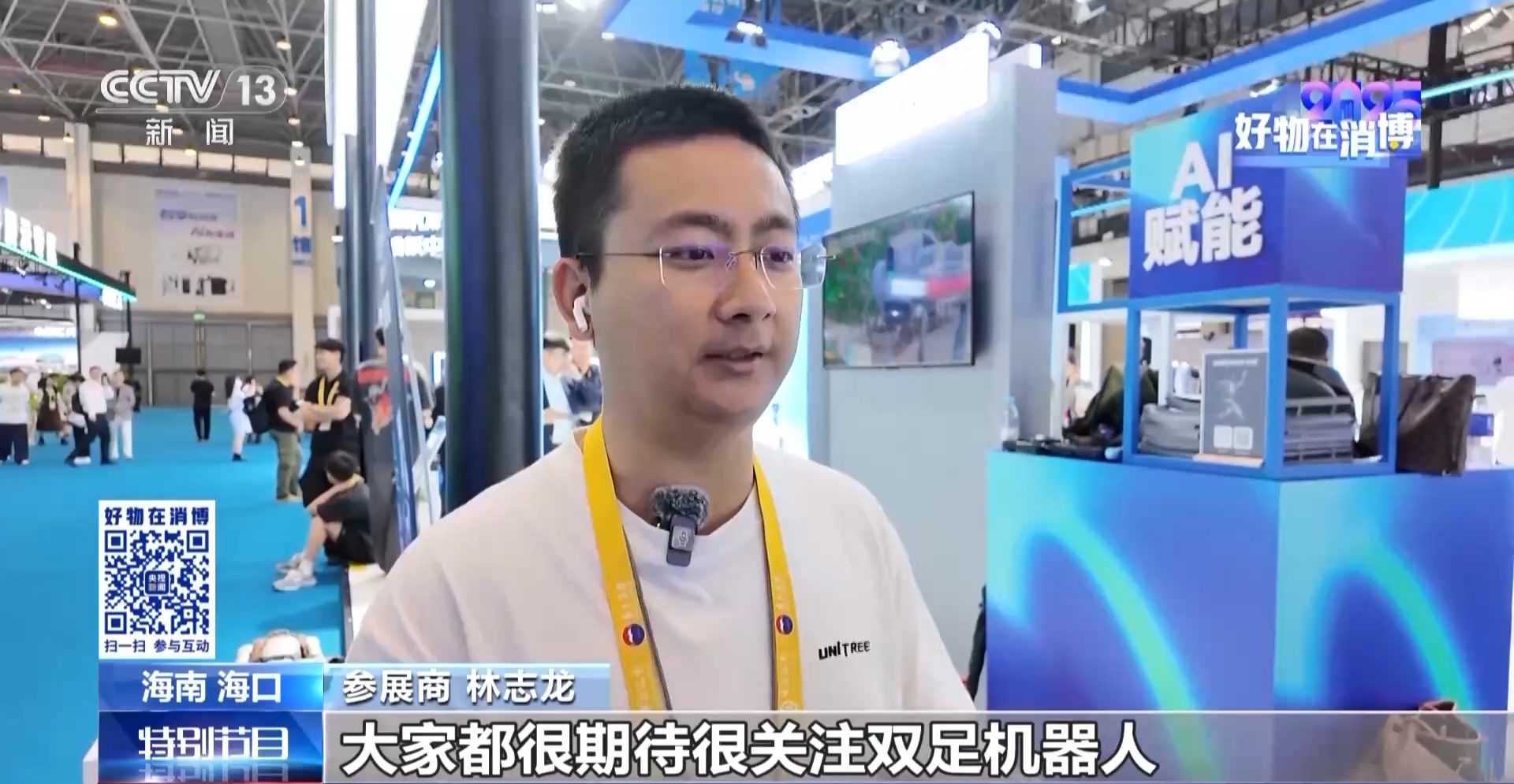 參展商 林志龍:大家都很期待很關(guān)注雙足機(jī)器人,這次來消博會(huì),也是想更加廣泛聽取消費(fèi)者對于產(chǎn)品的包括場景需求應(yīng)用的呼聲,然后可以針對性地再去做之后的產(chǎn)品的設(shè)計(jì)和規(guī)劃。