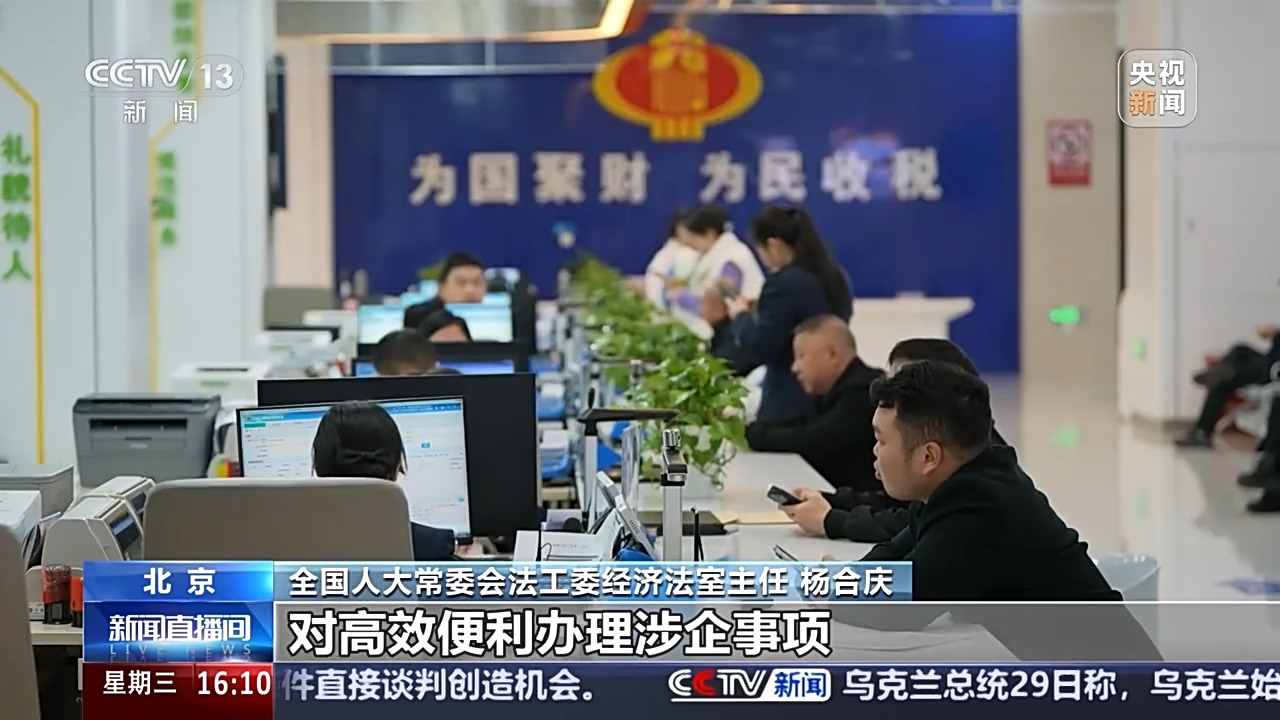 全國人大常委會法工委經濟法室主任 楊合慶:強化行政執(zhí)法監(jiān)督,堅決遏制“亂收費、亂罰款、亂檢查、亂查封”等行為,對高效便利辦理涉企事項、完善人才激勵政策、健全信用修復制度、健全糾紛多元化解機制、發(fā)揮行業(yè)協(xié)會商會作用、加強海外綜合服務和權益保護等作出規(guī)定。