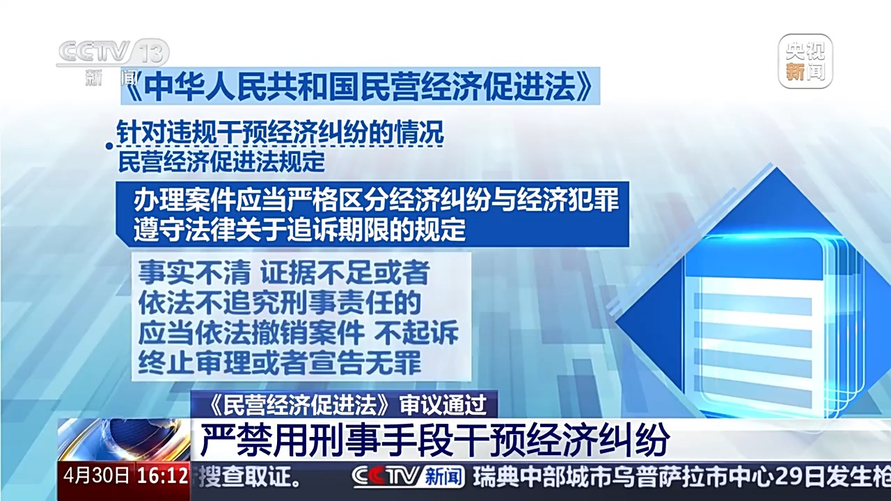 針對實踐中存在的違規(guī)干預經濟糾紛、異地執(zhí)法等情況,民營經濟促進法也作出了明確規(guī)定,嚴禁用刑事手段干預經濟糾紛,加強異地執(zhí)法協(xié)作。
