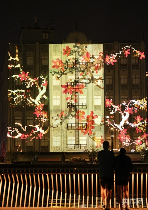 第三屆“閃亮·上?!膘o安國(guó)際光影展光影秀(央廣網(wǎng)發(fā) 上海市靜安區(qū)供圖)