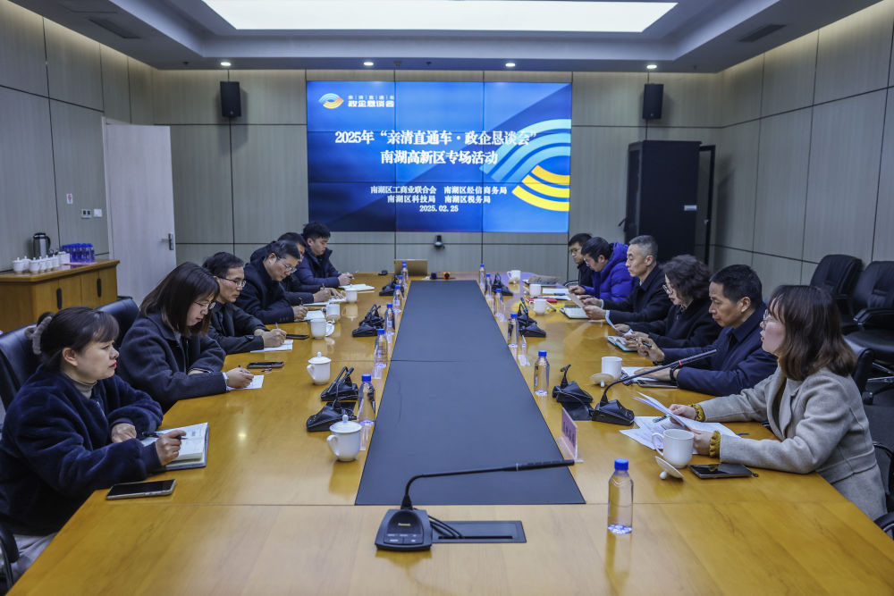 2025年2月25日,浙江省嘉興市南湖區(qū)工商聯(lián)召開(kāi)“親清直通車(chē)·政企懇談會(huì)”,為企業(yè)排憂解難,助力民營(yíng)企業(yè)穩(wěn)健發(fā)展。新華社記者 徐昱 攝