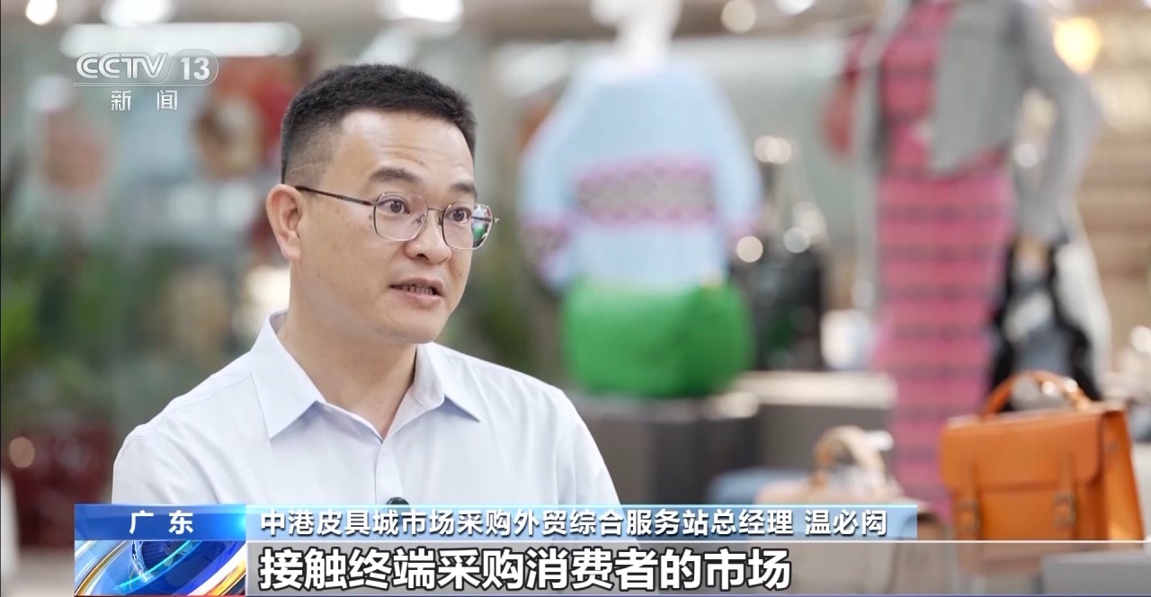 中港皮具城市場采購?fù)赓Q(mào)綜合服務(wù)站總經(jīng)理 溫必閎:因?yàn)槲覀兪堑谝皇纸佑|終端采購消費(fèi)者的市場,比如說我賣某個(gè)包包,這種包包的顏色、大小、款式、價(jià)格,它的銷量如何,直接反饋到這個(gè)產(chǎn)品在當(dāng)?shù)氐囊环N需求量,客戶需求最終轉(zhuǎn)化到這里,給到企業(yè)就是銷量跟產(chǎn)量。