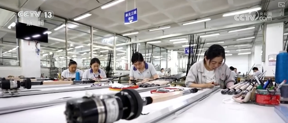 山東威海的釣具早已蜚聲海外,這里聚集了近5000家釣具生產(chǎn)及貿(mào)易企業(yè),包攬了全球六成魚竿市場份額。在這家規(guī)模較大的生產(chǎn)企業(yè)里,碳纖維魚竿從自動(dòng)流水線魚貫而下,即將發(fā)往歐洲市場。2025年以來,企業(yè)出口額達(dá)2.1億元,同比增長27%。