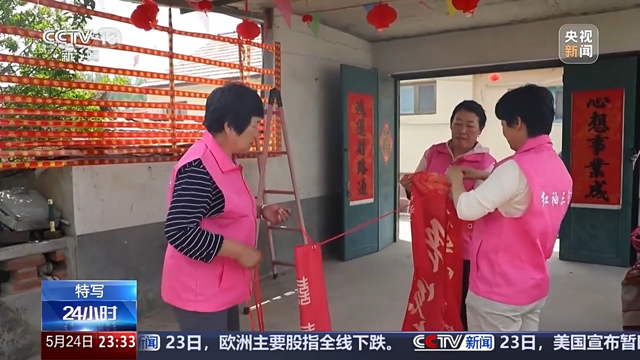 距離兒子的婚禮還有三天,三河埠村村民魏祥年家里已經(jīng)忙碌起來(lái)。陪著老魏夫婦一起忙活的,除了親友,還有好幾位穿著粉色志愿服務(wù)馬甲的大姐。