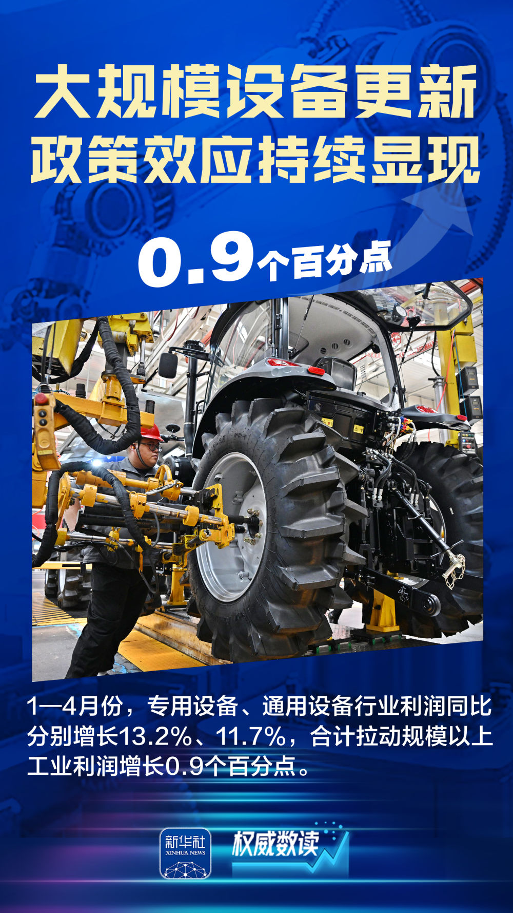 國家統(tǒng)計局、工信部等部門最新發(fā)布的數(shù)據(jù)顯示,今年前4個月,我國工業(yè)企業(yè)利潤增長加快、工業(yè)投資保持增長、裝備制造業(yè)引領(lǐng)作用突出、“兩新”政策效應(yīng)持續(xù)顯現(xiàn)……一系列數(shù)據(jù),充分展現(xiàn)出我國工業(yè)經(jīng)濟的強大韌性和抗沖擊能力。