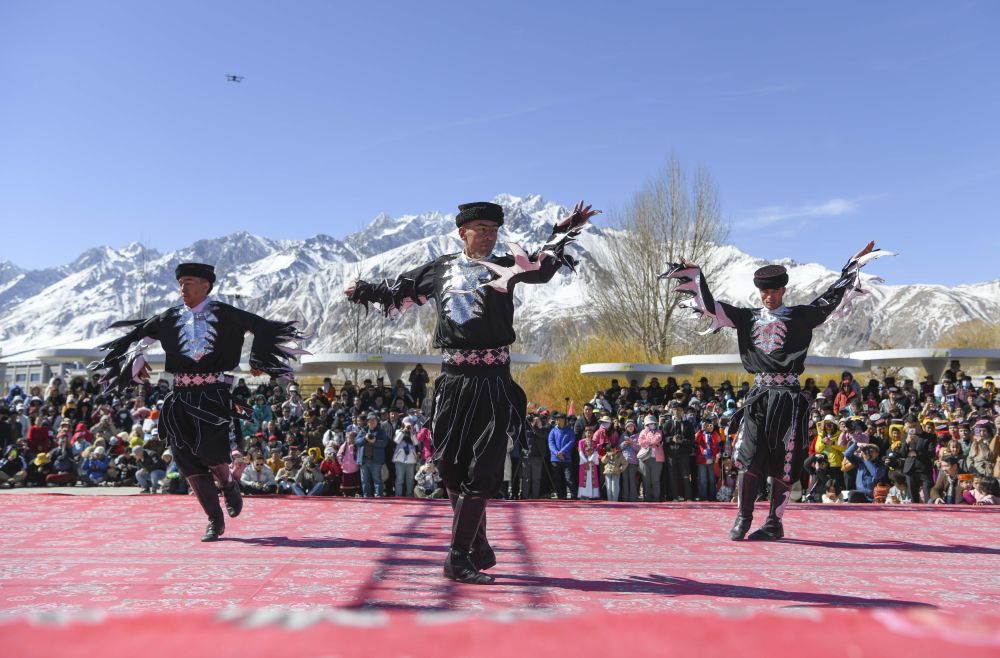 演員為觀眾表演國家級非物質(zhì)文化遺產(chǎn)——鷹舞(2025年3月22日攝)。新華社記者 胡虎虎 攝