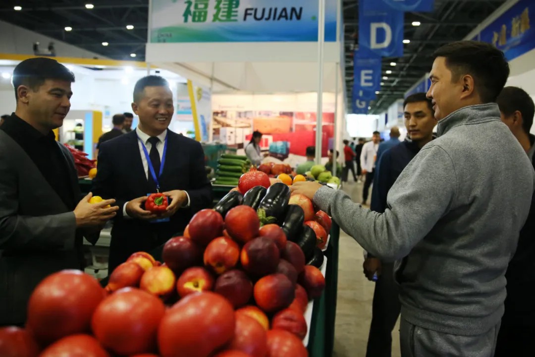 當(dāng)?shù)貢r(shí)間2024年8月23日,第十九屆哈薩克斯坦—中國(guó)商品展覽會(huì)在哈薩克斯坦首都阿斯塔納世博園國(guó)際展覽中心開幕。圖為來(lái)自中國(guó)的精品果蔬吸引不少觀眾前來(lái)問(wèn)詢。 中新社記者 單璐 攝