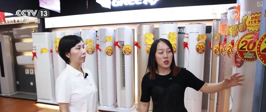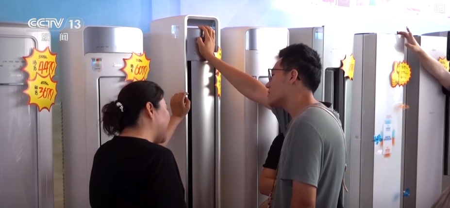 店主介紹,當(dāng)前消費(fèi)者“以舊換新”需求旺盛。6月份以來(lái),店內(nèi)銷(xiāo)售量環(huán)比增長(zhǎng)了33%,空調(diào)、冰箱等清涼家電成為消費(fèi)主力。