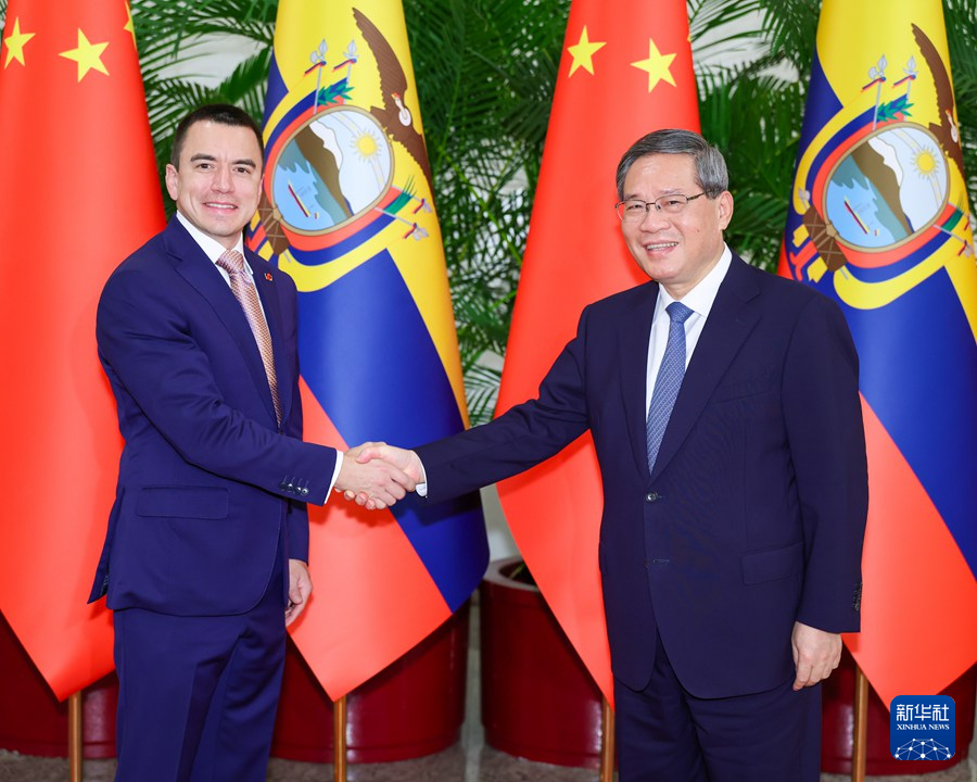 李強指出,中厄同為發(fā)展中國家,都把發(fā)展經(jīng)濟、改善民生作為重要任務。中方愿同厄方加強發(fā)展戰(zhàn)略對接,密切“一帶一路”合作,擴大雙邊貿(mào)易規(guī)模,深化在清潔能源、基礎設施、金融等領(lǐng)域合作。中方樂見更多厄方優(yōu)質(zhì)產(chǎn)品輸華,歡迎厄方用好進博會等推介平臺。雙方要繼續(xù)加強教育、文化、青年等領(lǐng)域交流合作,便利人員往來,夯實兩國關(guān)系的民意基礎。中方愿同厄瓜多爾等拉美和加勒比國家一道,以共建中拉命運共同體“五大工程”為契機,在實現(xiàn)現(xiàn)代化的道路上攜手前行。中方也愿同厄方加強在聯(lián)合國等多邊機制的溝通協(xié)調(diào),踐行真正的多邊主義,為維護世界和平和發(fā)展、推動構(gòu)建人類命運共同體作出積極貢獻。