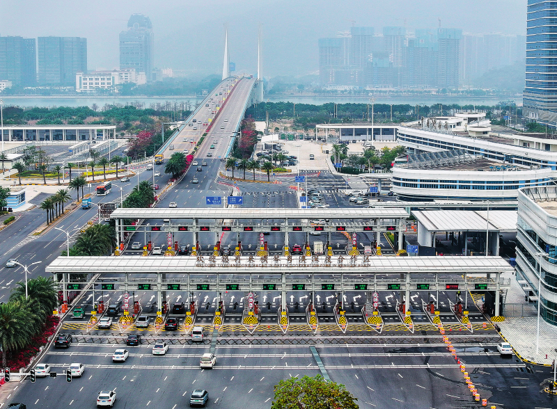 去年3月,橫琴口岸客貨車“聯(lián)合一站式”車道啟用,橫琴邊檢、橫琴海關(guān)以及澳門海關(guān)、澳門治安警察局和澳門衛(wèi)生局粵澳5家查驗單位對出入境車輛實行“一次排隊、集中采集、聯(lián)合驗放”,車輛的通關(guān)時長從“兩地兩檢”8分鐘,縮短為平均約100秒。