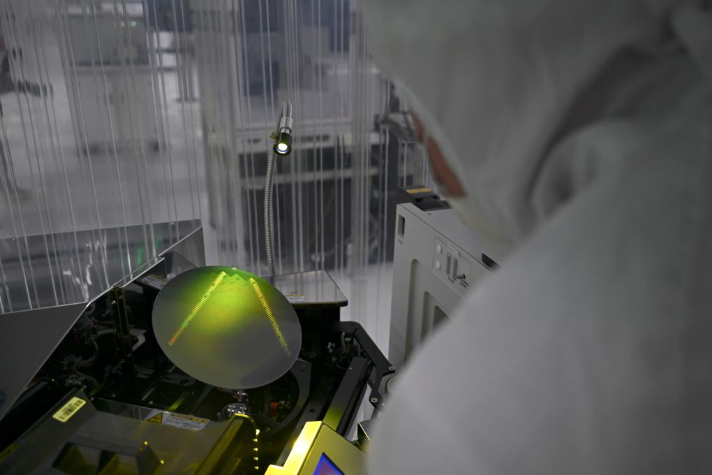 安徽華鑫微納集成電路有限公司的工作人員在檢測MEMS晶圓。新華社記者 黃博涵 攝