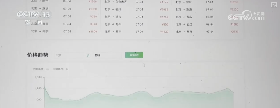 目前,昆明、烏魯木齊、西安等長(zhǎng)線目的地的暑期機(jī)票價(jià)格已開(kāi)始小幅上漲。記者查詢發(fā)現(xiàn),以北京—昆明機(jī)票為例,7月上旬價(jià)格在千元左右,7月中旬開(kāi)始至8月中旬,價(jià)格小幅上漲,均價(jià)在1200元到1500元之間。